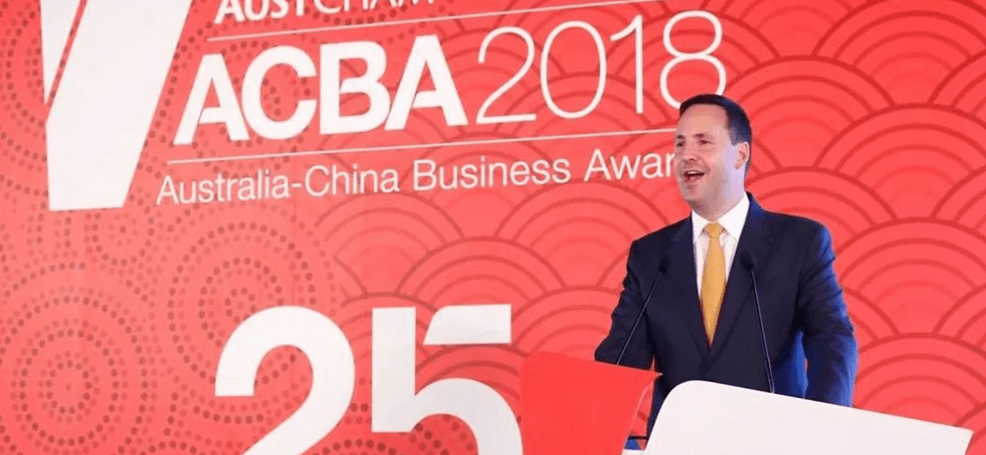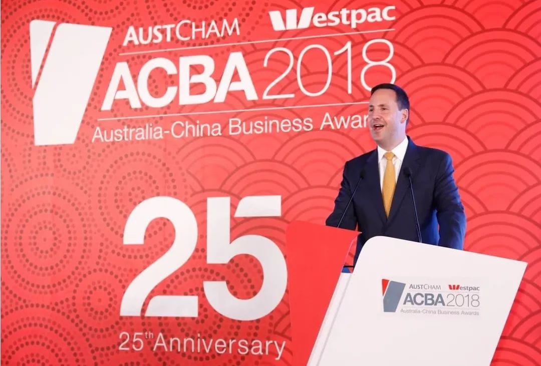 时任澳大利亚贸易部长的Steven Ciobo在2018颁奖典礼上致辞 (图片来源:AustCham)