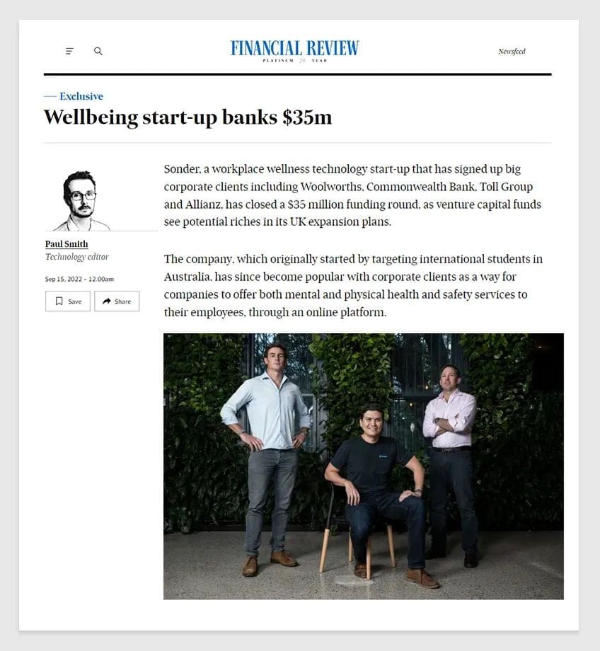 据澳大利亚主流媒体报道,澳洲科技公司Sonder(盛达澳)近日完成3500万澳元的B轮融资,资金将用于技术研发、数据洞察研究、分销渠道扩张及澳新和海外业务拓展,进一步推进盛达澳在澳大利亚及国际科技安全领域的发展。
