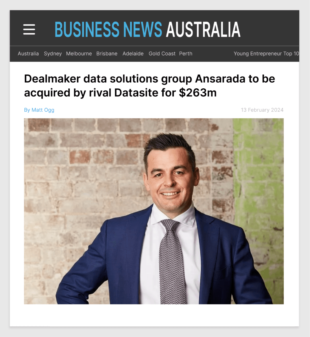 Ansarada 收到 Datasite(美国数据提供商)以每股 2.50 澳元的价格提出收购要约。