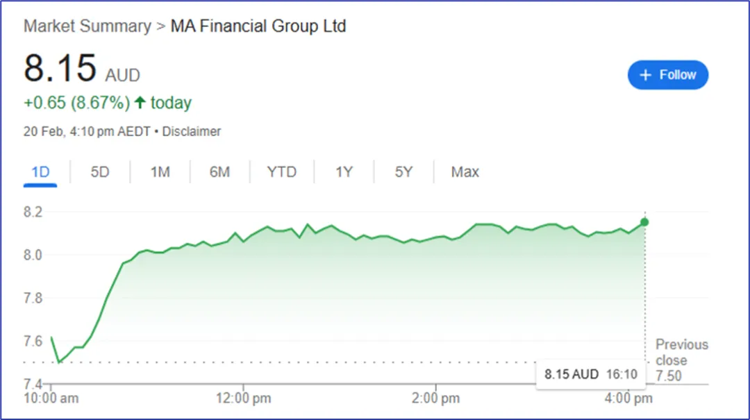 - MA Money 贷款组合规模达21亿澳元,同比增长155%