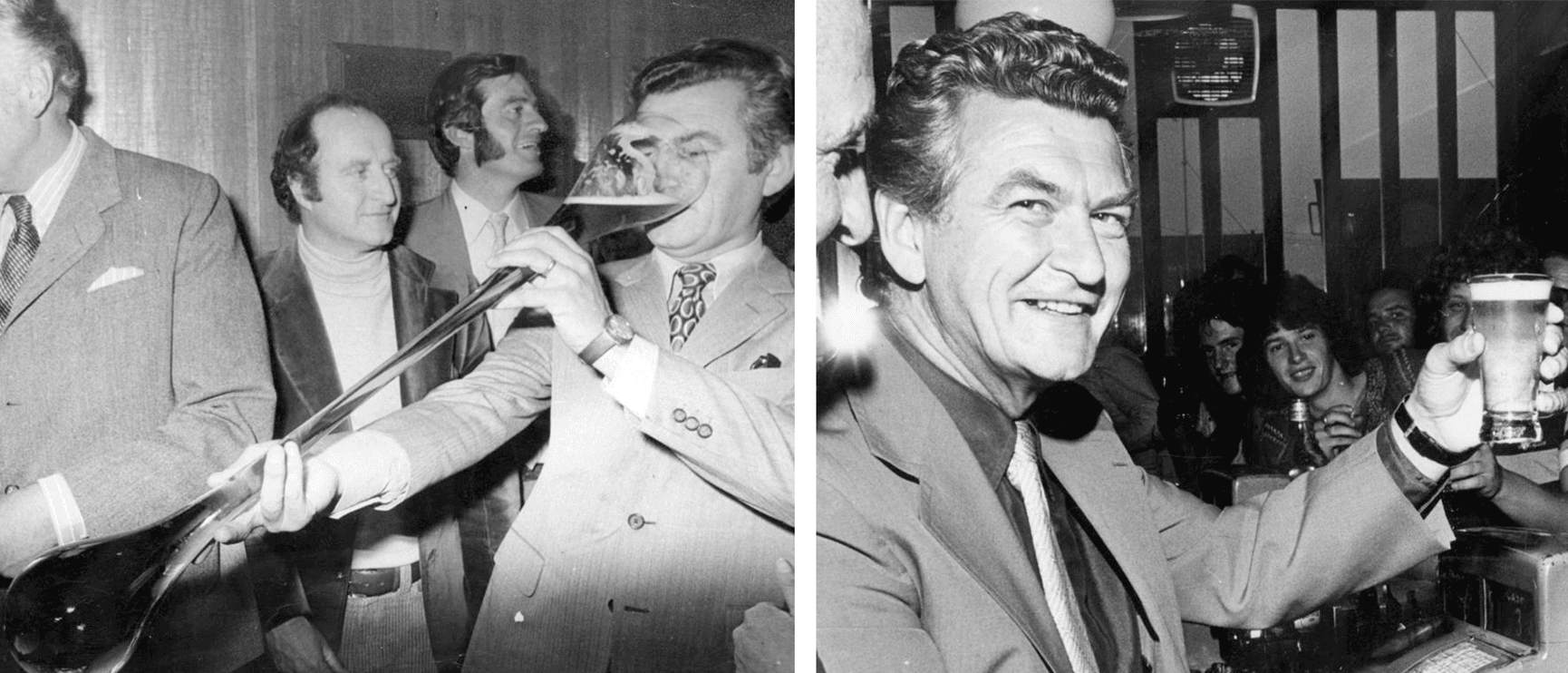澳洲政界领袖“啤酒”趣闻:澳大利亚第23任总理Bob Hawke在牛津大学留学期间以11秒内豪饮2.5品脱啤酒的惊人速度创下吉尼斯世界纪录;Bob Hawke 曾多次于澳洲当地Pub与选民举杯畅饮。
