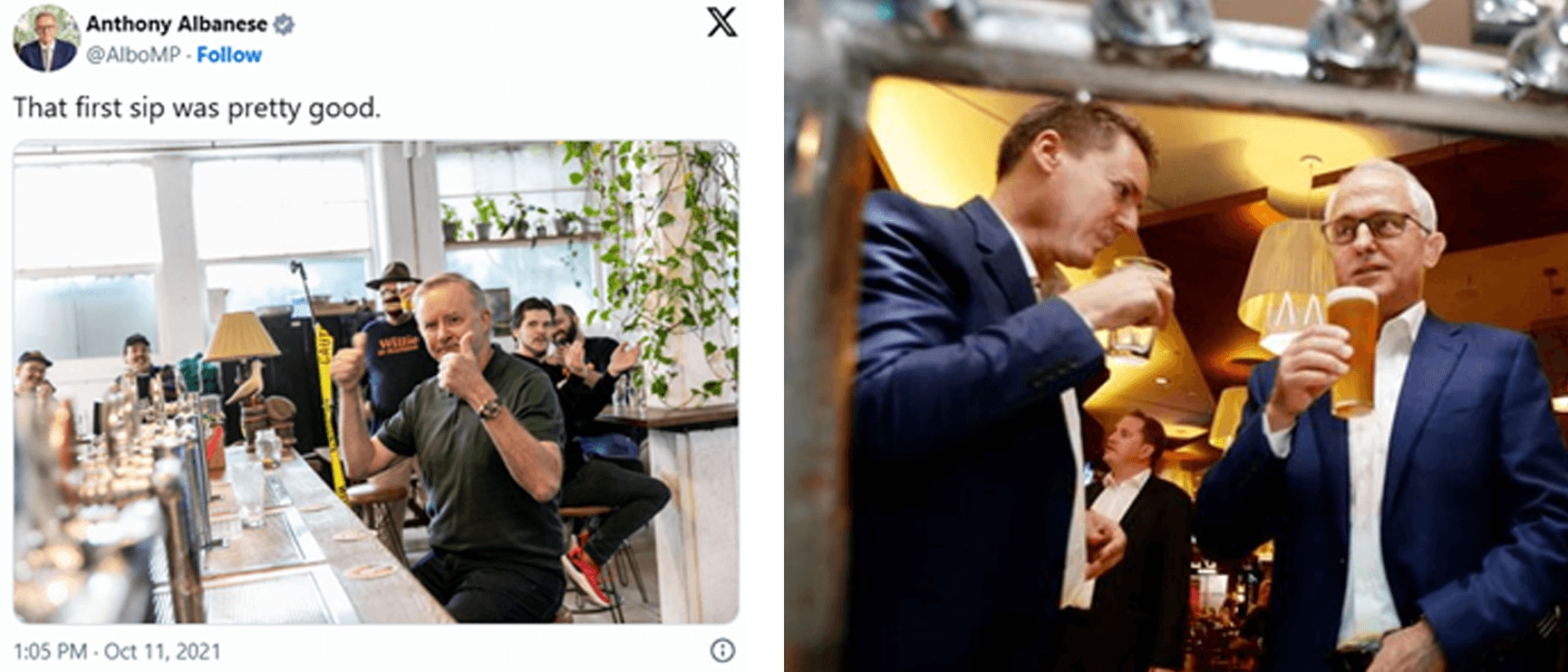 澳洲总理Anthony Albanese(工党)及前总理Malcolm Turnbull(自由党)此前在Pub拉票,作为竞选活动中重要的一环。