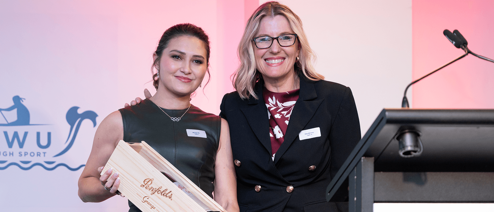 奔富高管Kate Whitney 为奥运会跳水运动员 Melissa Wu 颁发中澳贡献奖
