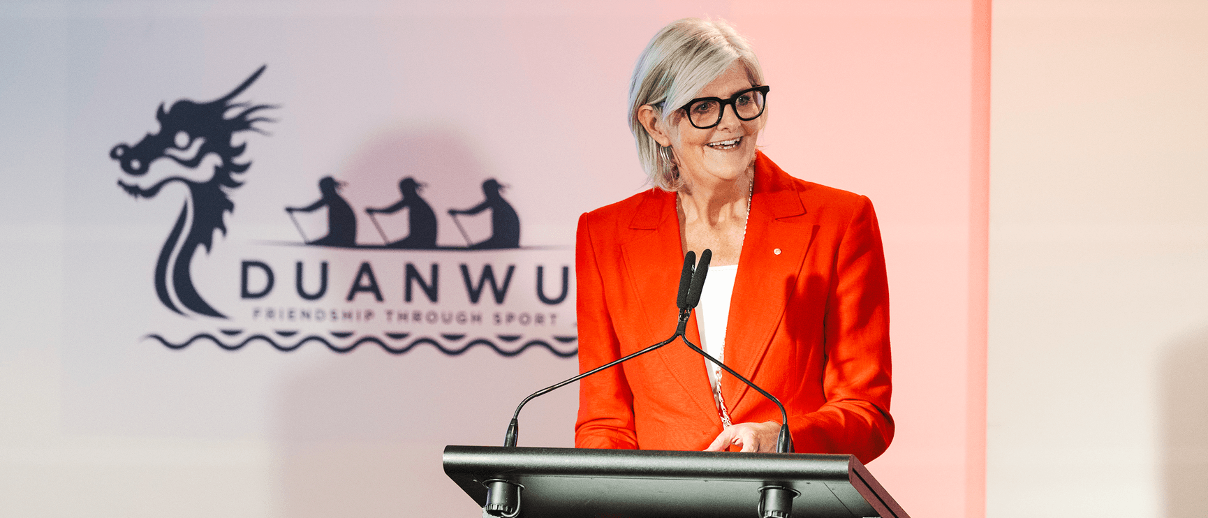 澳大利亚总督Sam Mostyn AC 阁下在致辞中高度评价本次活动,称举办以端午节为主题的体育活动,不仅有助于增进两国人民间的友谊,也是在庆祝几代华人对澳大利亚社会发展所做出的积极贡献。早在一百多年前,澳大利亚华人就已积极参与澳式橄榄球运动。她回顾了自己曾参与的中澳体育交流活动,她高度评价华人社区在商业、科学、教育等各个领域所取得的卓越成就。