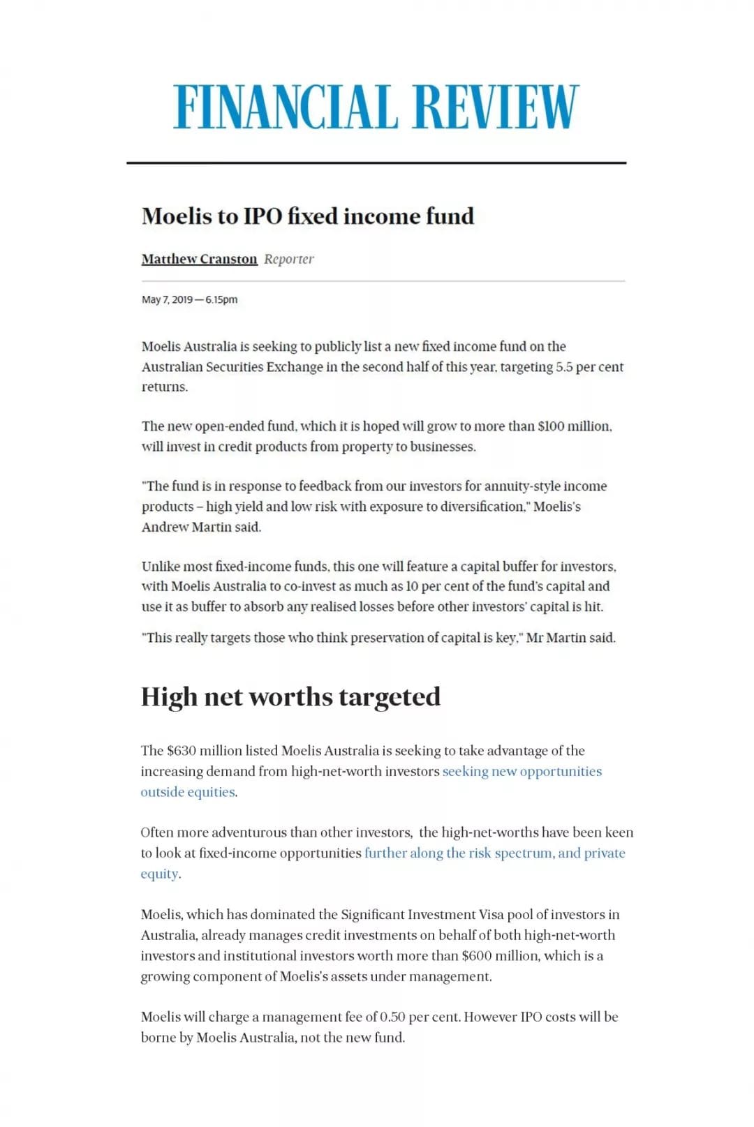 澳大利亚金融评论报(AFR)近期对美驰澳大利亚的报道