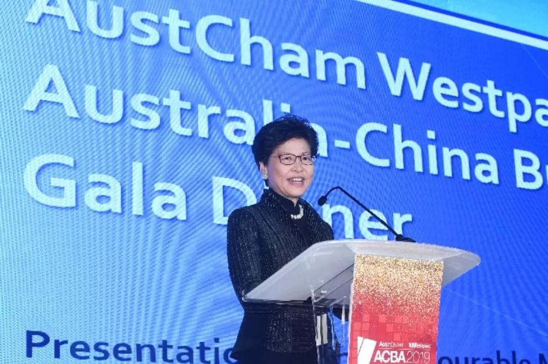 香港特别行政区行政长官林郑月娥女士在晚宴中发表演讲
