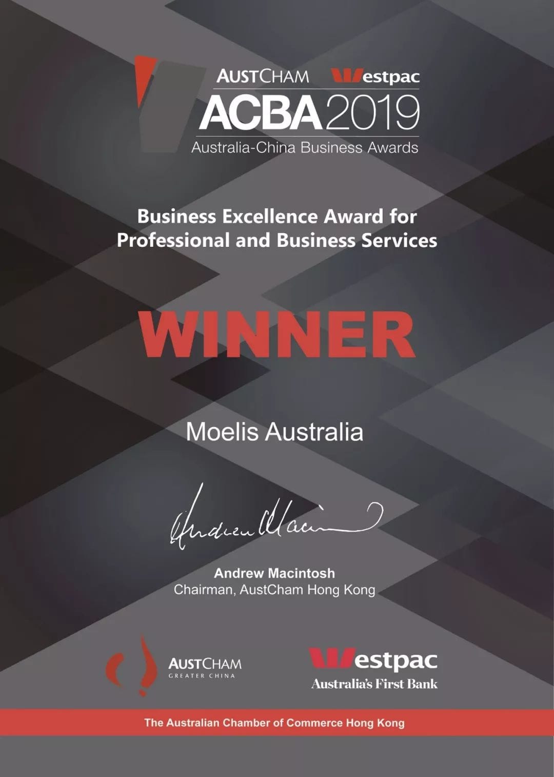 2019澳中杰出商业大奖(ACBA Award)颁奖晚宴5月28日晚在香港维多利亚港畔的君悦酒店圆满落下帷幕,美驰澳大利亚在一众优秀企业中脱颖而出,荣获2019澳中杰出企业 - 专业及商业服务大奖(Professional and Business Services Award)!