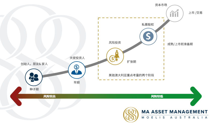 前文中我们介绍了美驰澳大利亚资管团队所主要关注的企业类型和投资节点-投资那些已经能够实现营收、具有一定市场份额但仍处在扩张期的企业。这个阶段的企业商业模式较为成熟、现金营收较为稳定。作为关注投资周期、着重风险管理的投资人而言,投资这个阶段的企业退出周期更短,则较为适宜。