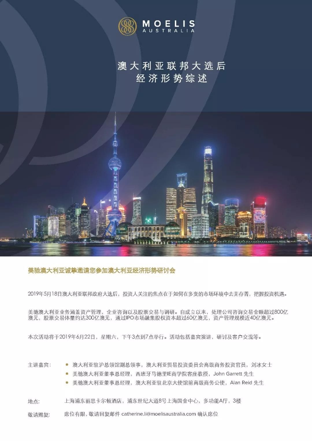 2019年6月22至23日,美驰澳大利亚专为中国客户举办的“澳大利亚联邦大选后经济形势综述”信息分享会在上海和杭州两地成功举行。