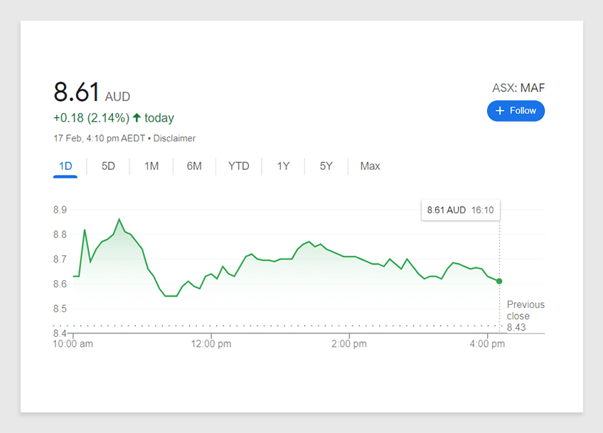 美驰澳大利亚(澳交所代码:MAF)于2月17日公布了2021年度财报。